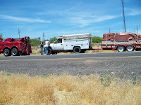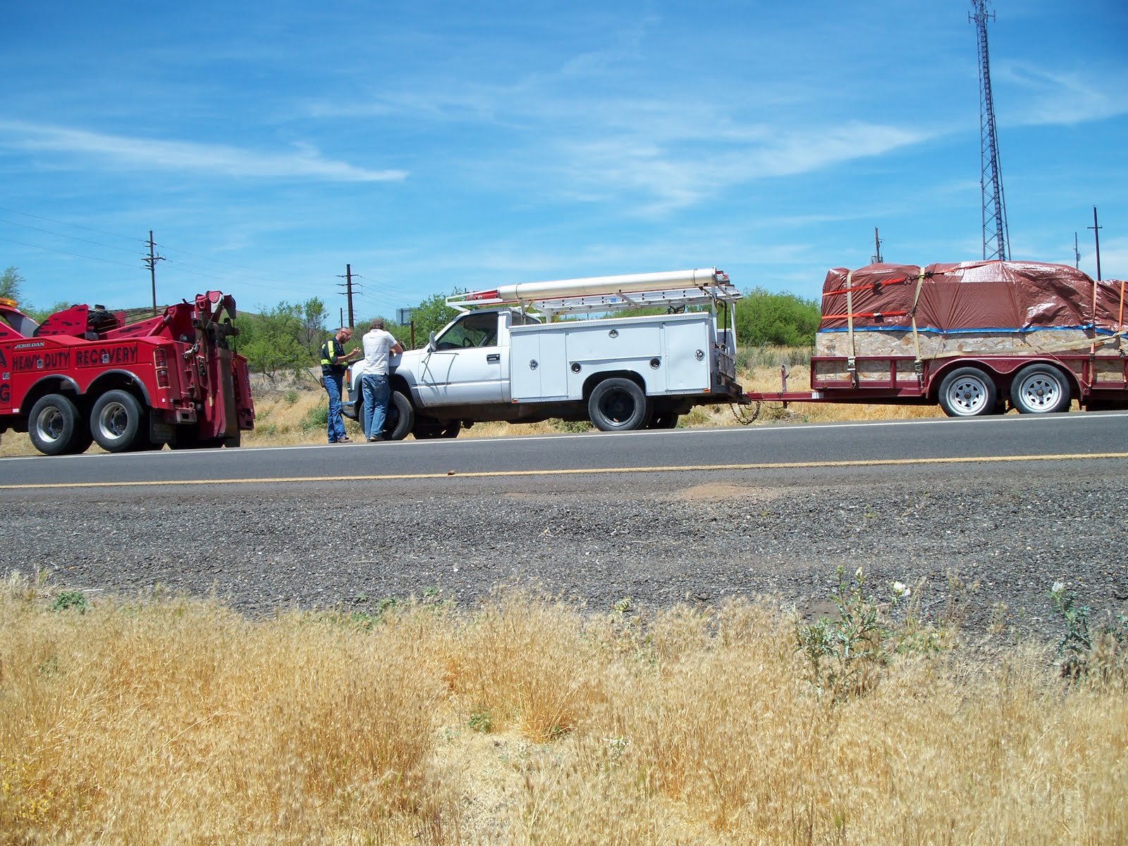 Thursday morning, we woke up bright and early, packed up the kids, and got on the road. Right after the Prescott exit, Ryan’s emergency blinkers came on and I followed him as he pulled to the side of I-17…deciding that was a tad dangerous, we made it to the next exit, yes, just 20 miles out of town, where we called a tow truck and made our way back to Ryan’s parents’ house.