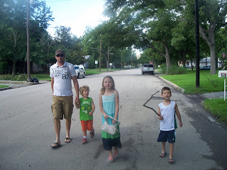 I thought it would be fun to take you with us through a day here in New Braunfels. 🙂 We start out, of course, by liberally spraying everyone with bug spray! Then, we just start walking! It’s so fun to have so much to do within walking distance. On this day, we are setting out to the Farmer’s Market, where there is live music, lots of fresh produce, & other fun stuff.