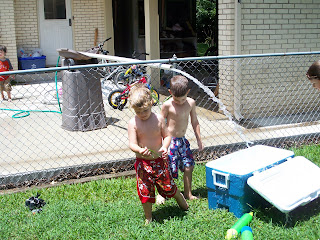 Later on, we have an impromptu water party in the backyard with all of the neighbors. With 6 boys ages 1-10, we had quite a lot of fun. Megan hid out next door with her friend, Vanessa, playing Monopoly.