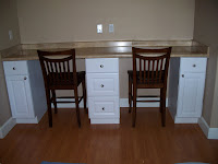 We spent the next four years making the house better, putting well over $100,000 in cash back into the house–just in materials (the things you can do with no debt & a mortgage that is only 20% of your income!). Ryan re-did the master bathroom tile 3 times, finally putting rock on the walls and slate on the floor, custom building a jacuzzi tub surround and tile countertops. With the help of my Uncle Mike, we installed a spectacular California Closets system in our closet. He designed and built floor to ceiling bookshelves for the formal living room, and custom built the fireplace surround. Ryan built the mudroom cabinets himself, along with a mini-office/craft area in the family room.